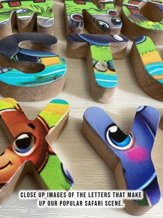 ABC-123 FlipCraft Round 13" Solid Wood Puzzle, Dual-Sided, 26 Letters, 0-9 and 16 Shapes, Safari/Farm Theme